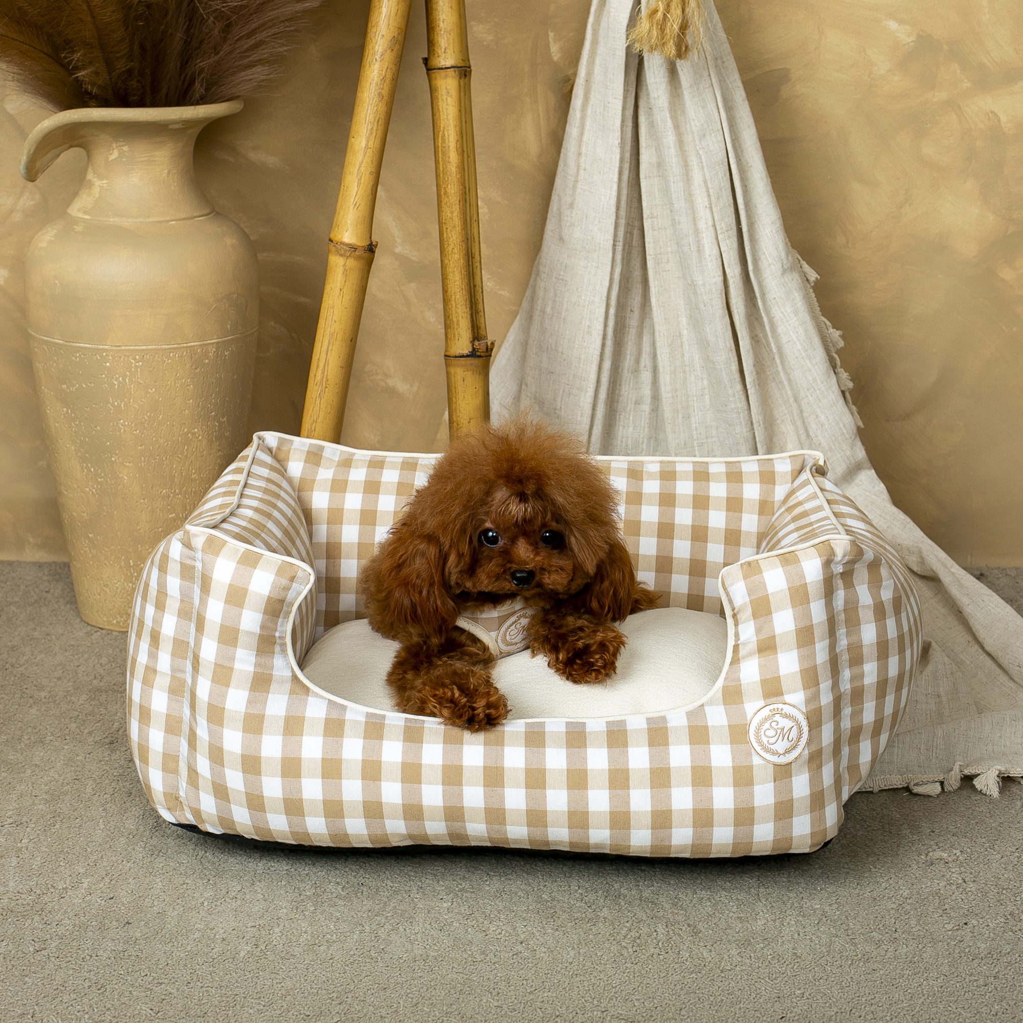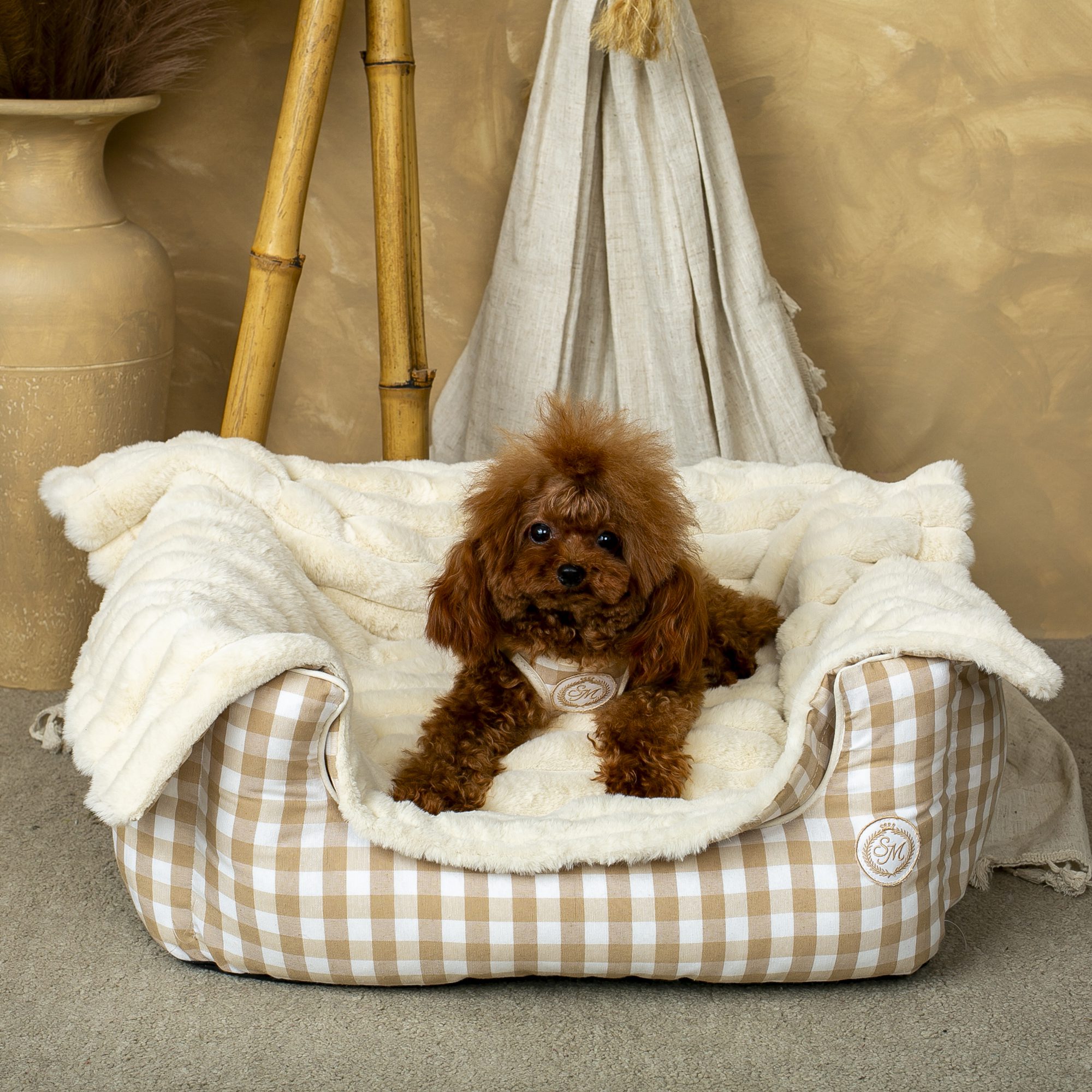 ¡El equilibrio ideal! Espacio generoso (60x48cm) para estirarse a gusto, bordes altos (24cm) para apoyar la cabecita y acurrucarse con calor. ¡Ni grande ni pequeña: hecha a medida para razas pequeñas!